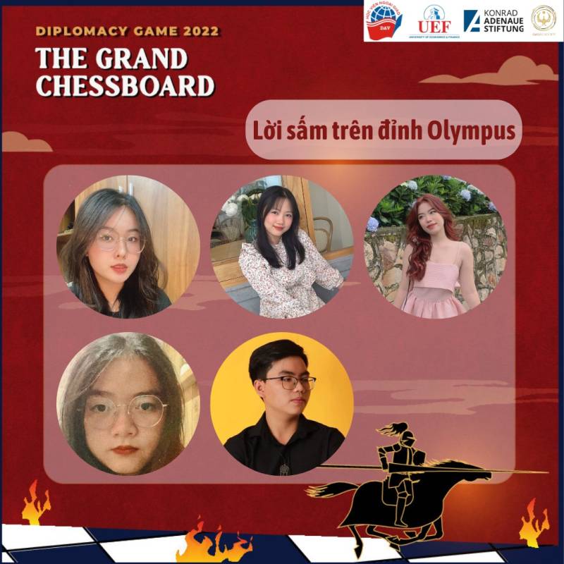 Vượt qua nhiều lá đơn đăng ký chất lượng và tâm huyết của các bạn học sinh, sinh viên đến từ các trường trên cả nước, Khoa Quan hệ Quốc tế - UEF xin chúc mừng 02 nhóm sinh viên của Khoa đã xuất sắc trở thành đội chơi chính thức (trong số 7 đội chơi) của DIPLOMACY GAME 2022: THE GRAND CHESSBOARD, đó là:
