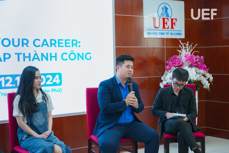 Tham gia chia sẻ những thông tin hữu ích cho sinh viên có anh Phùng Tiến Khoa - Cán bộ Ban tuyên giáo - Đối ngoại Thành đoàn TP.HCM; anh Nguyễn Cao Hoàng Nam - BTV/MC Ban Thể dục - Thể thao Đài truyền hình TP.HCM; chị Trần Lê Thanh Thủy - Thực tập sinh Trung tâm Đào tạo, Bồi dưỡng Kiến thức ngoại giao và ngôn ngữ. Cả ba khách mời đều là cựu sinh viên tiêu biểu của Nhà UEF, thuộc các khóa 2018, 2019 và 2020 của Khoa Quan hệ quốc tế.