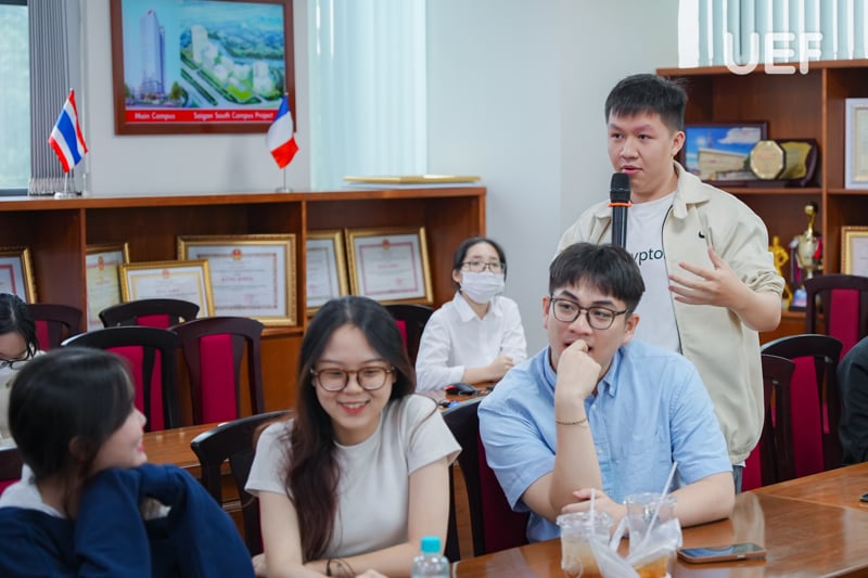 Anh Nguyễn Cao Hoàng Nam nhấn mạnh rằng trong bối cảnh đổi mới hiện nay, mỗi cá nhân cần không ngừng trau dồi, cập nhật và làm mới bản thân ngay từ khi còn ngồi trên ghế giảng đường. Anh cho rằng để nắm bắt và tận dụng tốt các cơ hội, người trẻ cần đặc biệt chú trọng vào việc rèn luyện khả năng ngôn ngữ, tích lũy kiến thức, đồng thời trải nghiệm và phát triển trong môi trường quốc tế. Những điều này không chỉ giúp UEFers thích nghi mà còn tạo nên lợi thế cạnh tranh vượt trội trên hành trình sự nghiệp.