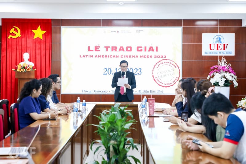 Vào ngày 20/12, Khoa Quan hệ quốc tế tiếp tục phối hợp với Viện Tây Ban Nha và Mỹ Latinh mang đến một kết thúc trọn vẹn cho các hoạt động bổ ích trên tại buổi Lễ bế mạc tuần lễ chiếu phim và tổng kết cuộc thi review phim các nước Tây Ban Nha và Mỹ La tinh. Tại đây, lãnh đạo, thầy cô Nhà UEF đã cùng khách mời và các bạn sinh viên nhìn lại hành trình đầy cảm xúc của cuộc thi, đồng thời tiến hành trao giải cho những thí sinh có sản phẩm xuất sắc.