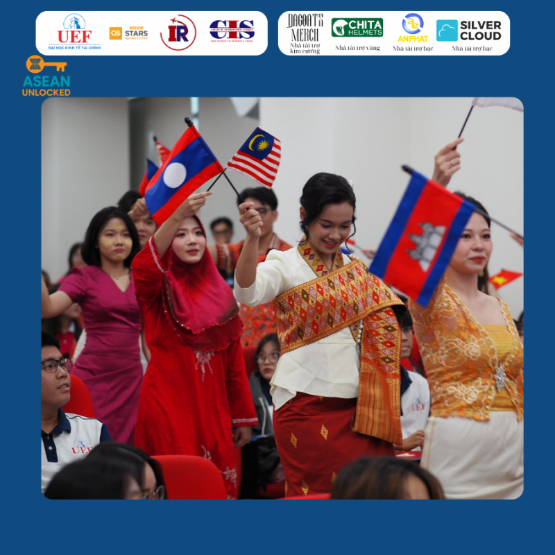Ngày hội ASEAN là sự kiện thường niên không còn xa lạ với sinh viên ngành Quan Hệ Quốc Tế tại UEF. Đây không chỉ là dịp để các bạn trẻ gặp gỡ, kết nối và giao lưu, mà còn là một hành trình học hỏi, khám phá những nét văn hóa đặc sắc của các quốc gia Đông Nam Á – từ ẩm thực, âm nhạc, trang phục truyền thống đến lịch sử, tập tục và đời sống thường nhật của người dân trong khu vực.