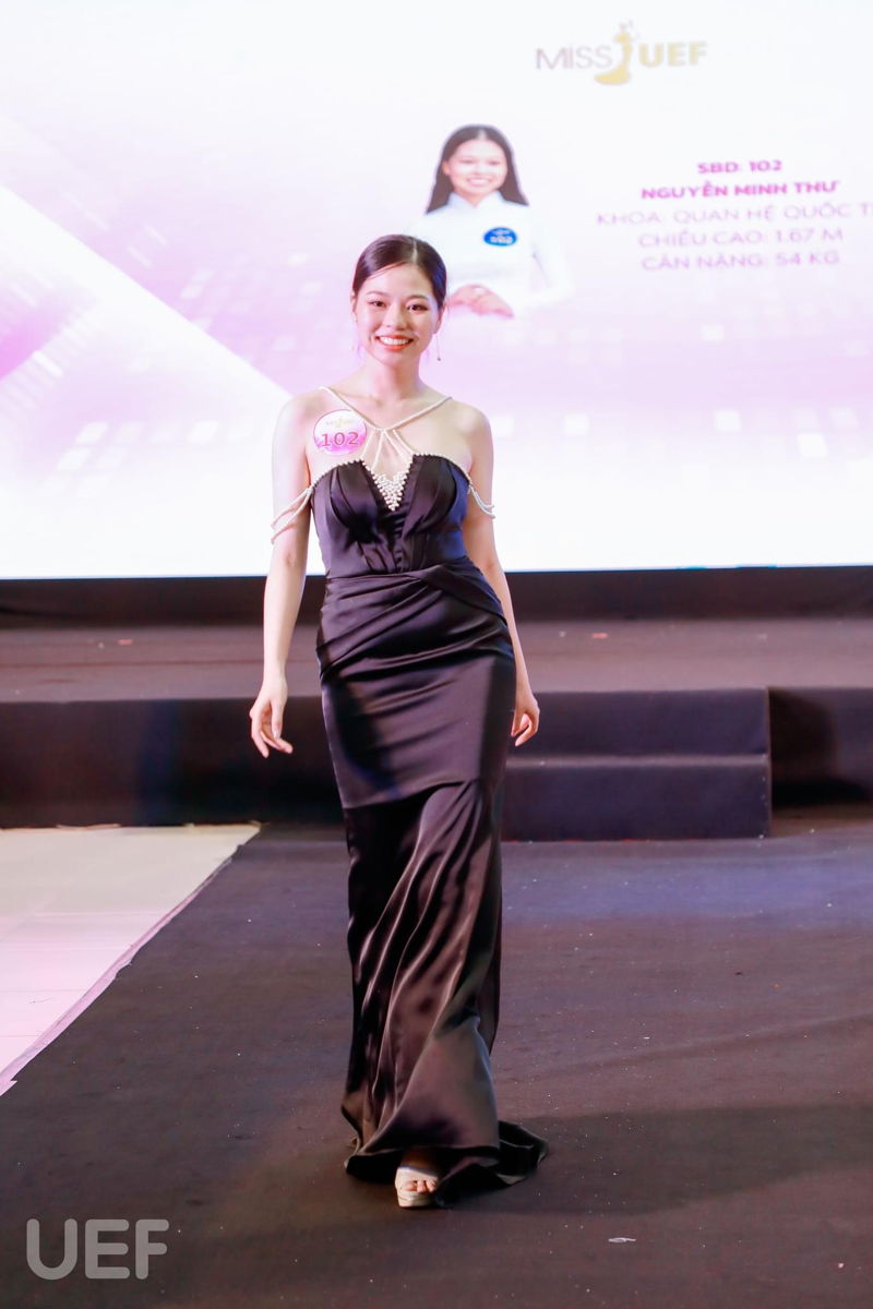 Là “nàng thơ” đến từ Khoa Quan hệ quốc tế, Minh Thư luôn hết mình vì màu cờ sắc áo của đơn vị. Hai năm trước, bạn đã từng tham gia và dừng chân tại top 20 của Miss UEF 2022. Đó là cột mốc giúp Minh Thư bước ra khỏi vòng an toàn của mình một cách ngoạn mục, đầy tự tin. Đồng thời, bạn cũng rút ra nhiều bài học quý giá cho bản thân. “Quay trở lại với Miss UEF 2024, em muốn chứng minh rằng, với sự nỗ lực và quyết tâm của mình sẽ mang lại kết quả xứng đáng. Đây là cơ hội để em có thể chinh phục ngôi vị cao nhất của cuộc thi thêm một lần nữa”, Minh Thư chia sẻ.
