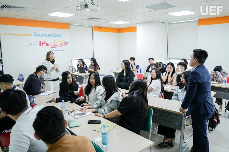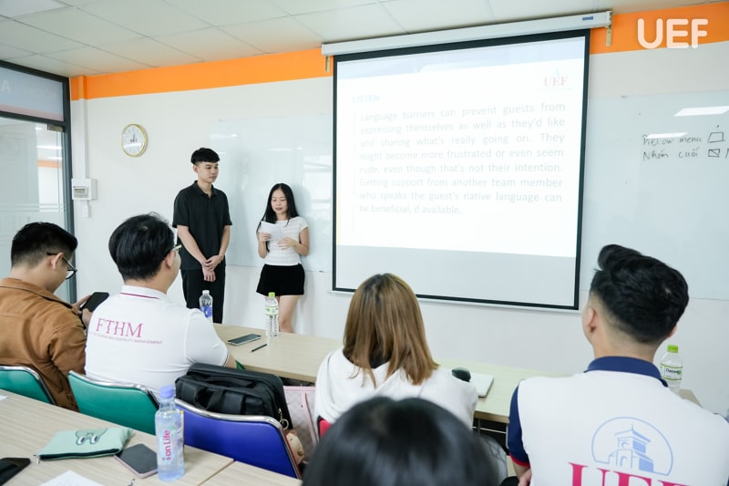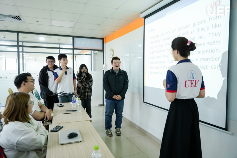 Trong ngành dịch vụ, sự tinh tế trong cách ứng xử và khả năng thuyết phục khách hàng không chỉ là kỹ năng mà còn là nghệ thuật. Một nhân viên chuyên nghiệp cần đáp ứng nhu cầu của khách hàng và phải biết cách mang đến những trải nghiệm đáng nhớ, gia tăng giá trị dịch vụ. Để giúp sinh viên nắm vững những yếu tố quan trọng này, Khoa Quản trị du lịch - Khách sạn UEF đã tổ chức khóa học ngắn hạn "Dịch vụ cá nhân hóa và nâng cao kỹ năng Upselling". Sau năm buổi học chuyên sâu, sáng 22/3, các bạn đã chính thức hoàn thành khóa học với nhiều trải nghiệm thực tiễn và bài học giá trị.