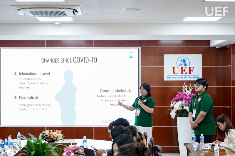 Tại hội thảo, 8 đề tài xuất sắc nhất của các nhóm tác giả đến từ 6 trường đại học đã được đánh giá bởi hội đồng chuyên môn giàu kinh nghiệm về nghiên cứu khoa học, có: TS. Nguyễn Phước Hiền - Giảng viên Khoa Du lịch và Dịch vụ hàng không, Học viện hàng không - Chủ tịch Hội đồng; ThS. Võ Hồng Sơn - Trưởng Khối ngành Kinh tế, Viện Quốc tế UEF, Phản biện 1; TS. Tăng Mỹ Sang - Giảng viên Khoa Kế toán - Kiểm toán, Trường Đại học Ngân hàng TP.HCM - Phản biện 2; ThS. Lê Thế Hiển - Giảng viên Khoa Quản trị du lịch - Khách sạn UEF - Ủy viên, Thư ký.