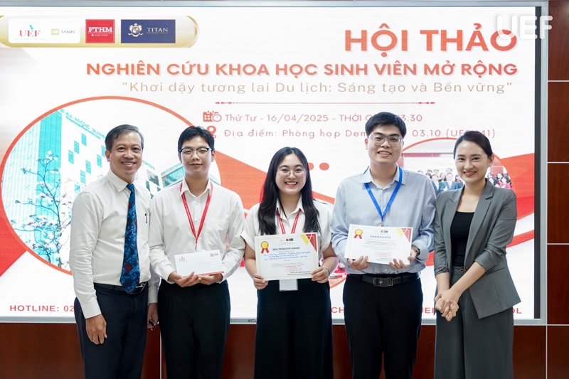 Ngoài ra, UEF cũng mang đến hội thảo hai đề tài khác của sinh viên Khoa Quản trị du lịch - Khách sạn: (1) "The Components of Cognitive Image: The Context of Spiritual Tourism in An Giang" và (2) “Đánh giá vai trò của influencer marketing trong việc quảng bá hình ảnh nhà hàng”. Đây là kết quả từ quá trình nghiệm thu 13 đề tài nghiên cứu khoa học cấp khoa. Tại vòng Chung kết vào ngày 12/4, nhóm thực hiện đề tài về influencer marketing đã xuất sắc giành giải Nhất cấp Khoa và nhóm nghiên cứu về du lịch tâm linh An Giang đạt giải Nhì.