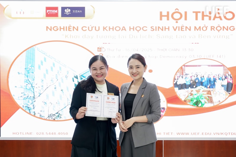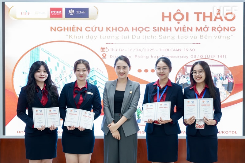Giữa dòng chảy của hội nhập và phát triển, nhóm ngành du lịch - khách sạn - nhà hàng không chỉ cần sự đổi mới trong mô hình kinh doanh mà còn đòi hỏi những tư duy sáng tạo và bền vững đến từ thế hệ trẻ. Hướng đến mục tiêu đó, chiều ngày 16/4, UEF đã tổ chức Hội thảo Nghiên cứu khoa học sinh viên mở rộng với chủ đề “Khơi dậy tương lai du lịch: Sáng tạo và bền vững”, quy tụ những đề tài nổi bật đến từ nhiều trường đại học trên địa bàn TP.HCM.