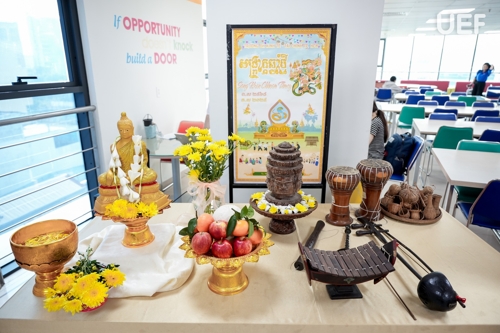 Chẳng cần đi đâu xa, UEFers đã được trải nghiệm nét văn hóa đón Tết đặc trưng của nước bạn Lào và Campuchia ngay tại trường. Không khí Tết Bunpimay (Lào) và Chol Chnam Thmay (Campuchia) được tái hiện đầy màu sắc qua chuỗi nghi lễ truyền thống ý nghĩa, những món ăn độc đáo.