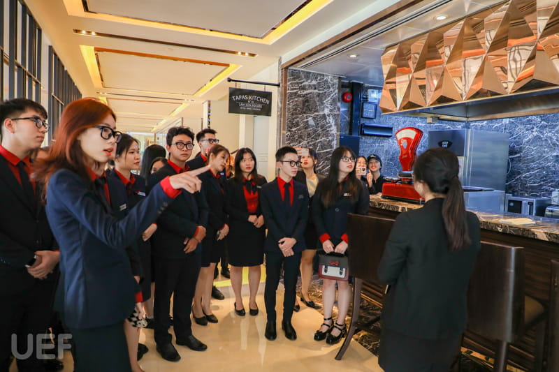 Sinh viên được hướng dẫn tham quan các khu vực của khách sạn