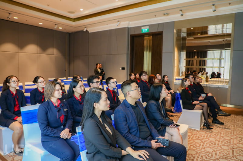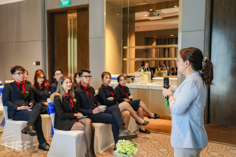 Đón đoàn UEF lần này là chị Nguyễn Thị Bích Hà - Director of Human Resource, chị Võ Thùy Linh - Training and Development Manager, chị Nguyễn Thị Hồng Thanh - Human Resources Executive, chị Tạ Hoàng Minh Thư - Human Resources Trainee, chị Lê Thị Thùy Linh - Human Resources Trainee. Về phía Reflections Restaurant có chị Trần Ngọc Thúy Hằng - Reflections Supervisor.