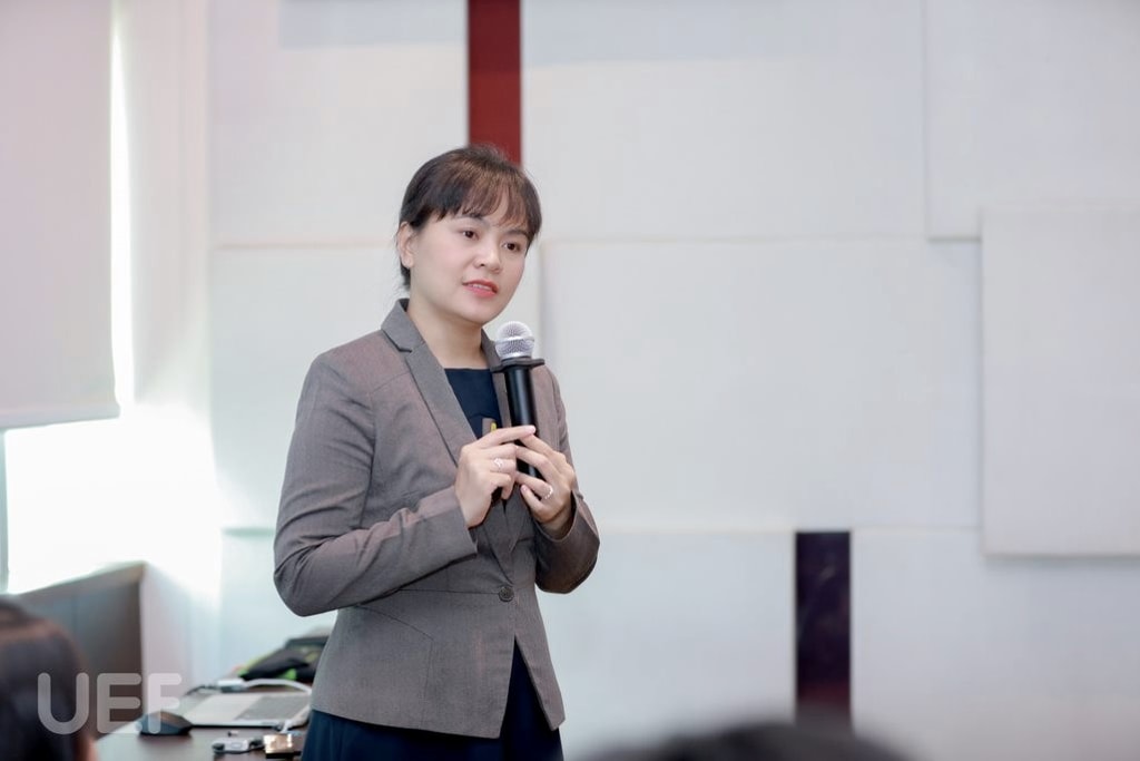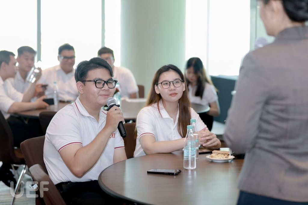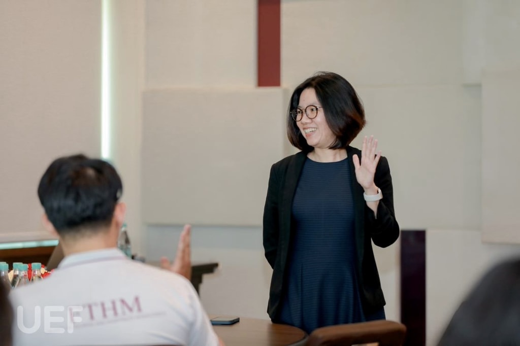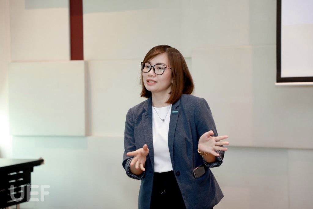 Chị cũng chia sẻ thêm về thương hiệu và những giá trị bền vững mà Le Meridien Hotel đã và đang xây dựng. Các bạn sinh viên được học hỏi về thương hiệu, cách vận hành, chính sách đãi ngộ,... của khách sạn. Chị Hương ngỏ lời mong muốn sau khi sinh viên Nhà UEF quay lại, chính thức đồng hành với Le Meridien Hotel, các bạn sẽ cho thấy sự hoàn thiện và cố gắng của bản thân, không ngừng trau dồi kỹ năng mỗi ngày khi còn trên ghế nhà trường và hứa hẹn sẽ mang lại những chính sách đãi ngộ tốt nhất.