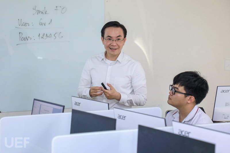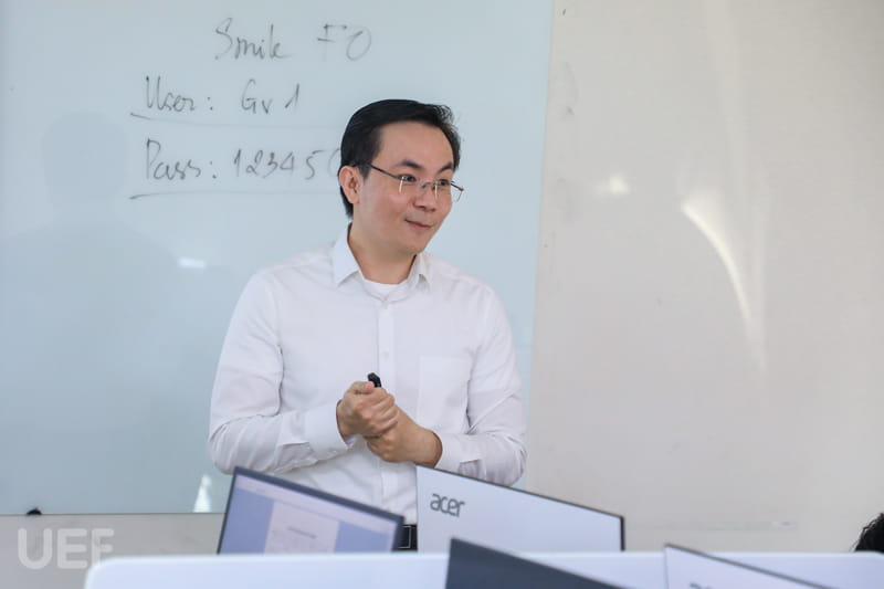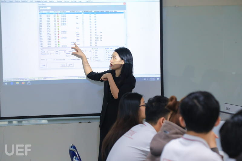 Buổi học được hướng dẫn và hỗ trợ bởi ThS. Nguyễn Vương Hoài Thảo - Phó Trưởng khoa Quản trị du lịch - Khách sạn UEF và anh Đinh Xuân Hiệp - Front Desk Manager New World.