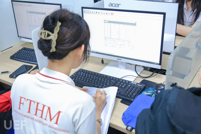 Sinh viên được hướng dẫn về phần mềm quản lý mà các khách sạn sử dụng trong thực tế