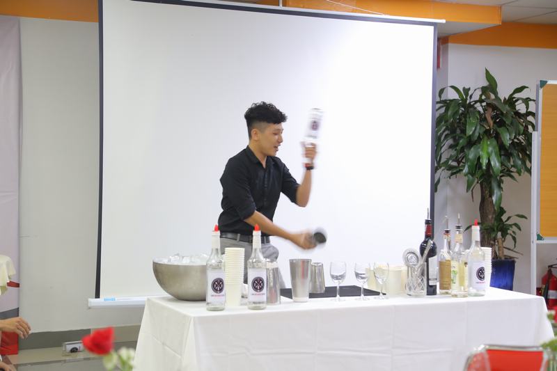 Cũng trong chương trình, sinh viên UEF có dịp bổ sung thêm nhiều kiến thức về nghề Bartender. Diễn giả Nguyễn Minh Chí – Quản lý Bar Vesper đã giới thiệu sơ lược về lịch sử của nghề, cách phân biệt các loại cocktail. Thay vì chỉ pha chế các ly cocktail đẹp mắt và ngon miệng, các Bartender đã tạo ra những màn trình diễn thú vị để thu hút và gây ấn tượng với khách hàng. Điểm thú vị ấy cũng đã xuất hiện trong chương trình. Sinh viên UEF thực sự mãn nhãn với những màn trình diễn ấn tượng từ các Bartender chuyên nghiệp.