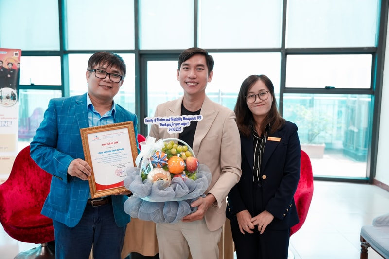 Đại diện Khoa Quản trị du lịch - khách sạn đến tham dự và đồng hành với tân sinh viên có ThS. Nguyễn Viết Thuỷ - Phó trưởng khoa, kiêm Trưởng ngành Quản trị nhà hàng và dịch vụ ăn uống; ThS. Trần Thị Bích Duyên - Giảng viên khoa, ThS. Mai Lý Hiển - Giảng viên khoa.