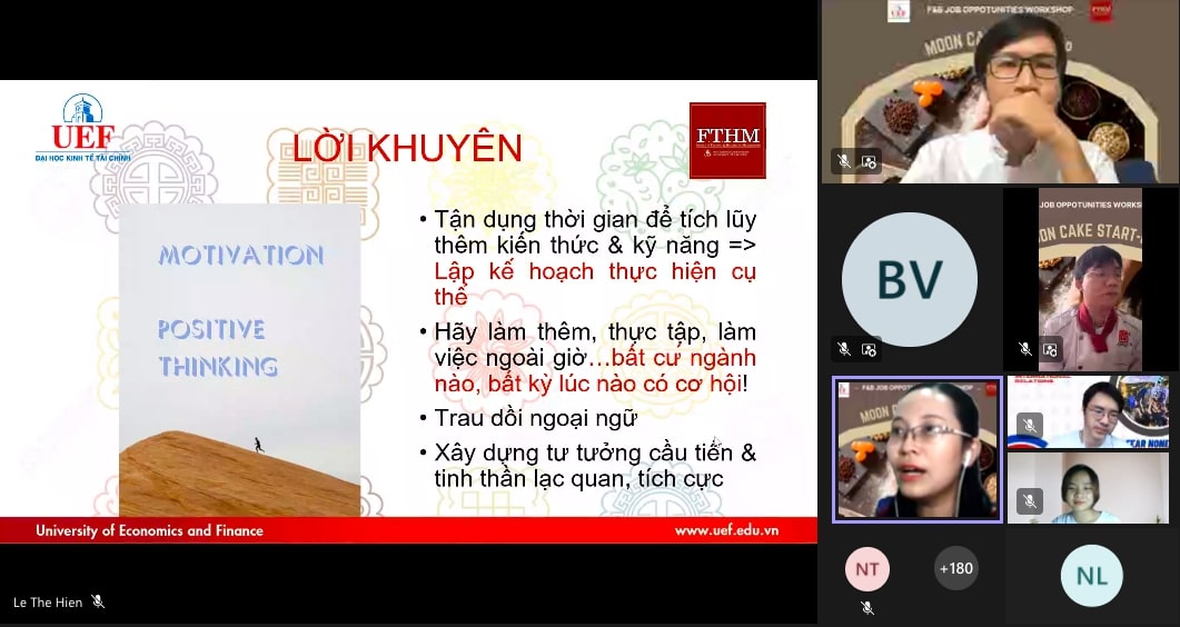 Thông qua phần tương tác đặt câu hỏi trực tiếp, sinh viên đã có thêm nhiều thông tin bổ ích về ngành F&B, tự khích lệ bản thân có động lực học tập vì sự phát triển của ngành này đang trong giai đoạn phục hồi. Hy vọng với những chia sẻ của diễn giả, các bạn sẽ cố gắng trau dồi kiến thức và rèn luyện kỹ năng từ bây giờ để mở rộng cơ hội nghề nghiệp trong tương lai.