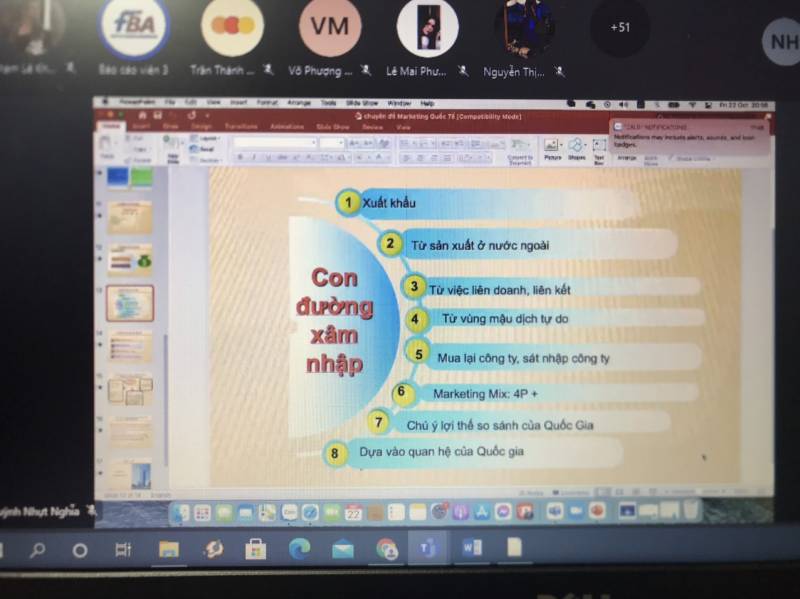 Trong buổi tối này, BCV đã trình bày cụ thể nhiều nội dung “nóng” và nổi bật về các vấn đề liên quan đến marketing quốc tế, rất sát với môn và ngành mà các bạn đang theo học. Ví dụ khái niệm về Marketing Quốc Tế, chiến lược Marketing quốc tế và xâm nhập thị trường quốc tế trong điều kiện Covid 19 đang diễn ra và kể cả trong bối cảnh bình thường mới. Khi trình bày, BCV đã đặt ra nhiều câu hỏi tương tác để tạo điều kiện cho các bạn sinh viên được bày tỏ suy nghĩ và quan điểm riêng có liên quan đến ngay chủ đề của chuyên đề được báo cáo. Đồng thời, BCV cũng đã chỉ ra sự thay đổi về Hành Vi Tiêu Dùng của người tiêu dùng, thói quen mua hàng chuyển từ offline sang mua hàng online, sự thay đổi về nhu cầu và cách chi tiêu do sự ảnh hưởng của Covid-19 ...