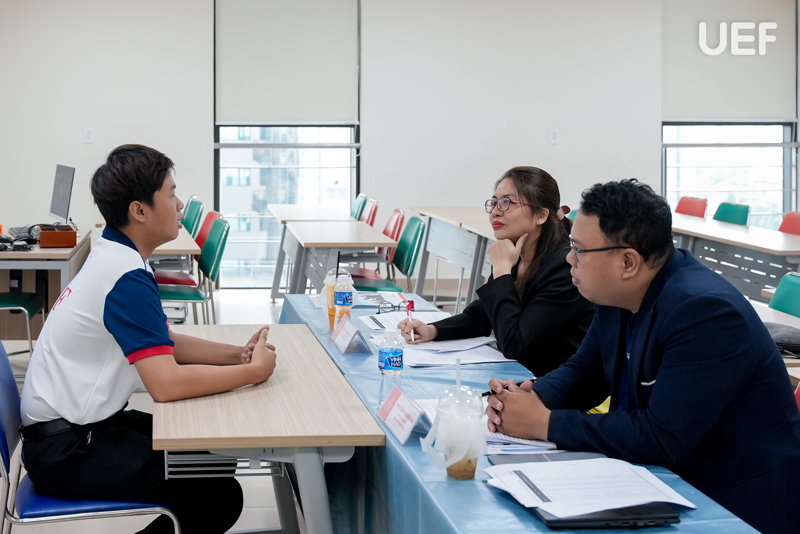 Trước những câu hỏi tình huống hay tình huống giả định đến từ hội đồng, UEFers đã bình tĩnh xử lý, thể hiện khả năng tư duy logic và thái độ nghiêm túc. Đặc biệt, các bạn cho thấy sự chủ động trong việc nhìn nhận ưu - khuyết điểm cá nhân và bày tỏ mong muốn tìm kiếm một người đồng hành, người mentor thực thụ để cùng vượt qua những chặng đường quan trọng sắp tới trong hành trình học tập và định hình sự nghiệp.