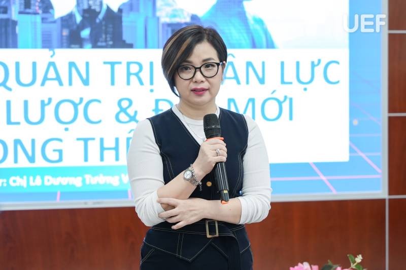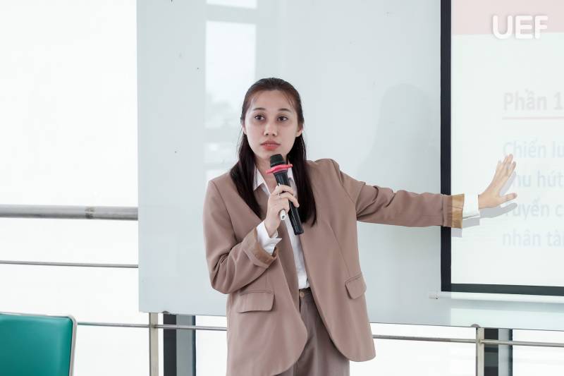 Chiều cùng ngày, học viên được tìm hiểu sâu hơn về chiến lược thu hút và tuyển chọn nhân tài cùng TS. Đặng Thanh Thủy - Trưởng ngành Quản trị nhân lực UEF. Nội dung xoay quanh các bước quan trọng từ hoạch định tuyển dụng, xây dựng thương hiệu nhà tuyển dụng, tìm kiếm ứng viên, sàng lọc - đánh giá đến hội nhập nhân sự. Đây là quy trình then chốt nhằm bảo đảm chất lượng nguồn nhân lực trong bối cảnh cạnh tranh hiện nay.