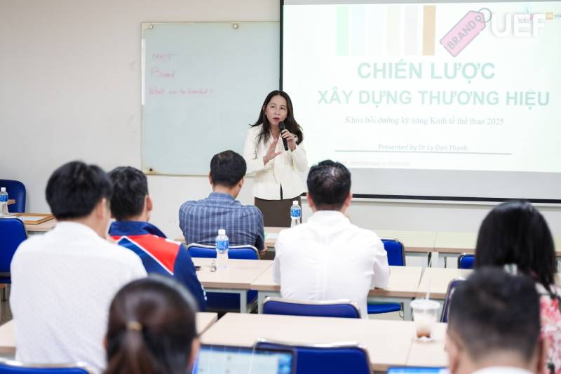 Tiếp đó, TS. Lý Đan Thanh tập trung vào khía cạnh chiến lược xây dựng thương hiệu trong thể thao. Đây là yếu tố cốt lõi quyết định vị thế của một câu lạc bộ, một đội tuyển hay thậm chí là một vận động viên. Cô Đan Thanh hướng dẫn học viên cách định vị thương hiệu, xác lập giá trị cốt lõi và duy trì hình ảnh bền vững thông qua những hoạt động truyền thông chiến lược. Tại lớp học, học viên đã được thực hành các bài tập về xây dựng chiến lược thương hiệu, qua đó rèn luyện khả năng tư duy và sáng tạo trong môi trường thực tế.