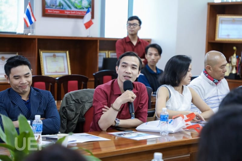 Tiếp đó, ThS. Huỳnh Quốc Phong đã chia sẻ về chương trình hợp tác doanh nghiệp của UEF. Buổi gặp mặt này giữa hai bên được tổ chức với mong muốn phát triển mối quan hệ với doanh nghiệp qua các hoạt động thực tế và gắn kết hơn với nhiều "cộng sự" mới. Trong khuôn khổ hợp tác, doanh nghiệp sẽ hỗ trợ UEF trong các hoạt động học thuật chuyên môn, đóng góp xây dựng chương trình đào tạo bám sát thực tiễn, tiếp nhận sinh viên đến tham quan, thực tập,... ThS. Huỳnh Quốc Phong cho biết, những năm gần đây, UEF đã tổ chức thành công hoạt động "phỏng vấn thử, kết quả thật". Đây là cơ hội để sinh viên tiếp cận doanh nghiệp, lựa chọn công việc phù hợp với bản thân. Ngược lại, các doanh nghiệp cũng tìm kiếm được nhân tài phục vụ cho sự phát triển của tổ chức.