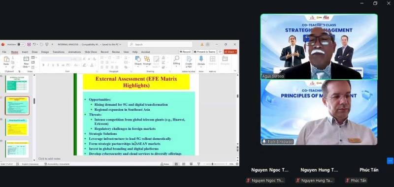 Nhằm nâng cao chất lượng giảng dạy, mở rộng góc nhìn học thuật và tăng cường hợp tác quốc tế, Khoa Quản trị Kinh doanh, trường Đại học Kinh tế - Tài chính TP.HCM (UEF) đã phối hợp với Khoa Kinh tế & Quản trị, Trường Đại học Jenderal Soedirman (UNSOED), Indonesia tổ chức buổi đồng giảng (co-teaching) trong học phần Quản trị Chiến lược tại Học kỳ 1 năm học 2025-2026.