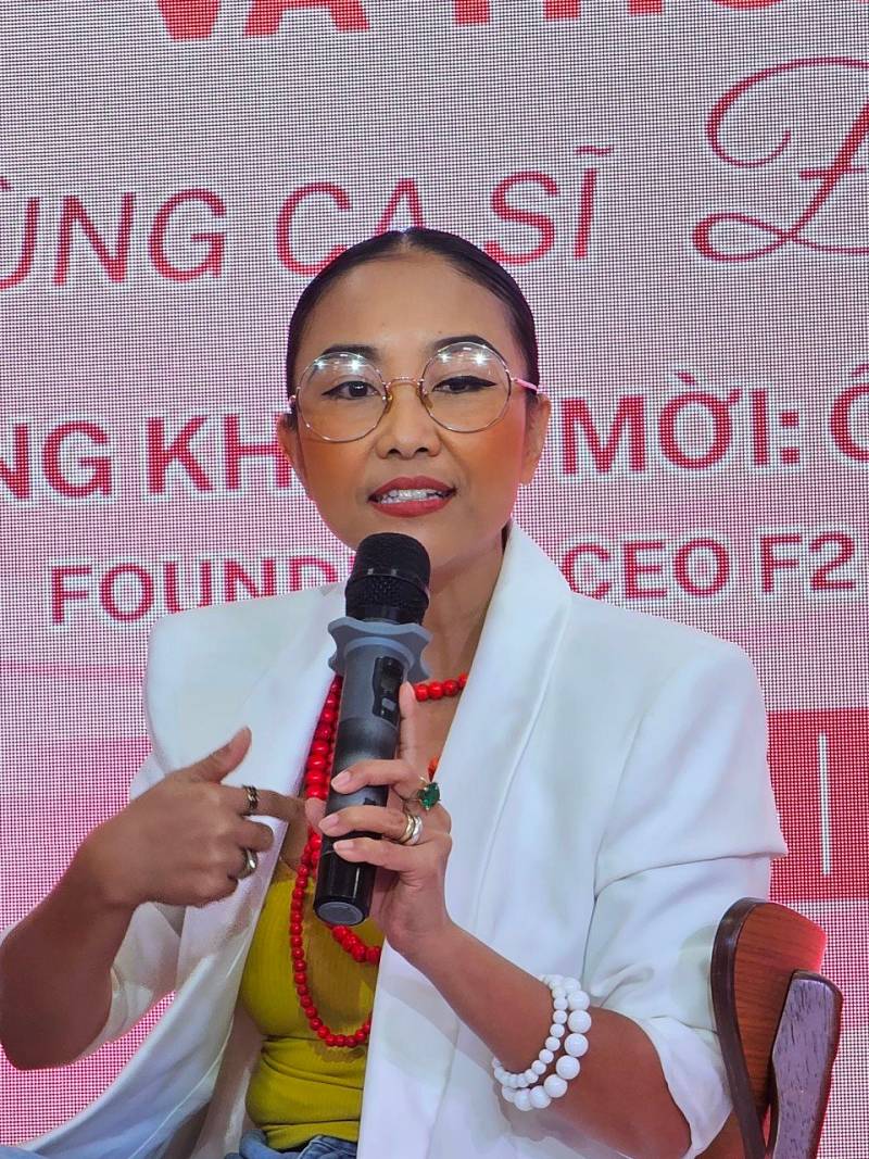 Ca sĩ Đoan Trang (bìa phải) phát biểu tại sự kiện