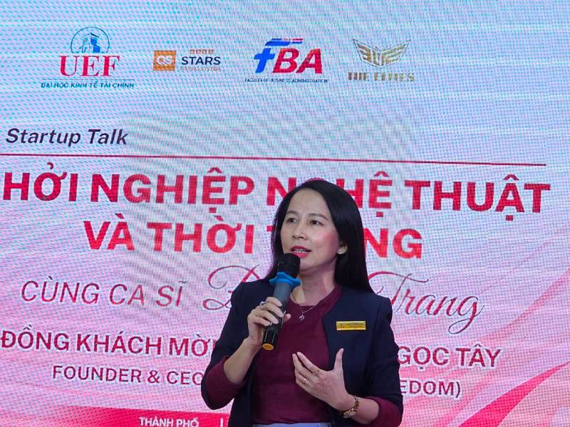 Ngày 13/1, Khoa Quản trị kinh doanh và CLB The Elites Trường ĐH Kinh tế-Tài chính TP.HCM (UEF) phối hợp tổ chức chương trình "Starup Talk: Khởi nghiệp nghệ thuật và thời trang cùng ca sĩ Đoan Trang".