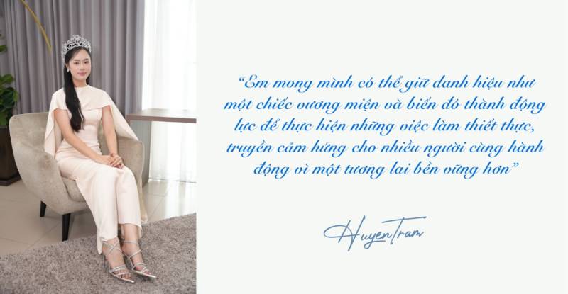 Với Trâm, vương miện Á hậu 2 là cột mốc đặc biệt của riêng mình. Đó như một lời nhắc nhở về trách nhiệm lớn lao trong việc lan tỏa cách sống tích cực đến cộng đồng, truyền cảm hứng cho các bạn trẻ dám dấn thân và dám ước mơ. Huyền Trâm tin rằng, danh hiệu cũng chính là cơ hội để bạn có thể thực hiện sứ mệnh mà mình đã ấp ủ từ đầu hành trình.