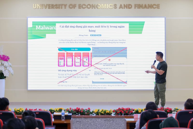 Với mong muốn giúp sinh viên hiểu rõ hơn về các mối nguy hại từ môi trường trực tuyến, cách phát hiện và phòng tránh các hình thức lừa đảo hoặc tấn công mạng, sáng ngày 13/5, Đoàn - Hội khoa Quản trị kinh doanh đã phối hợp với Công ty TNHH Chaincohort tổ chức workshop “Phòng chống lừa đảo Cyber và quản trị thông tin cá nhân”. Tại đây, các bạn đã được tranh bị những kỹ năng cần thiết để bảo vệ thông tin cá nhân và tài khoản trực tuyến.