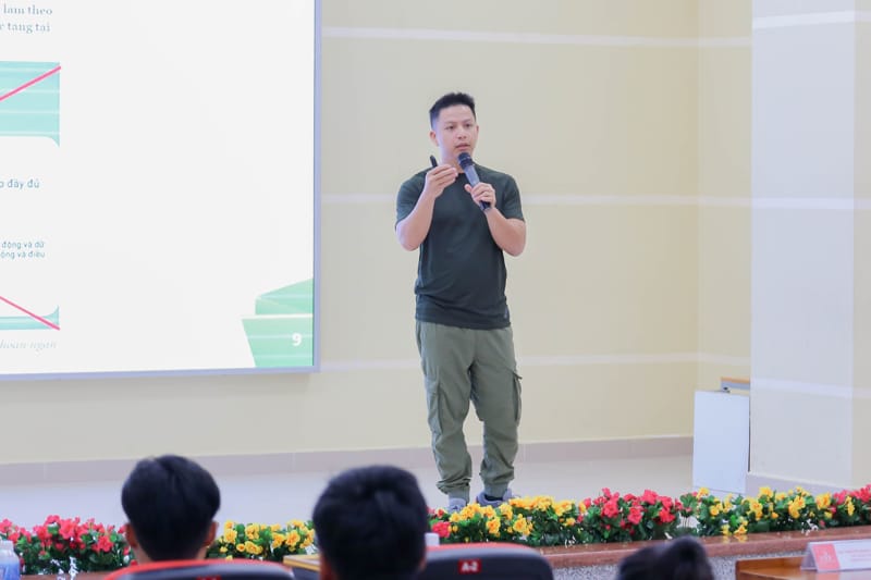 Diễn giả Hiếu PC cung cấp nhiều thông tin bổ ích giúp sinh viên an toàn trên không gian mạng