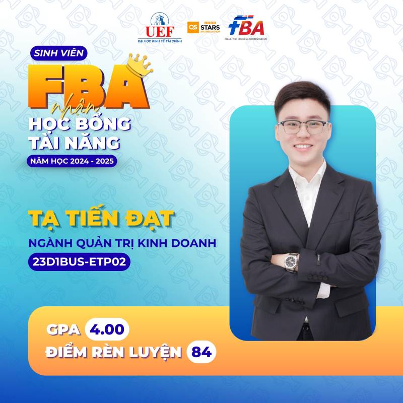 Top 6 sinh viên đạt Học bổng Tài năng FBA-UEF năm học 2024 – 2025 không chỉ là niềm tự hào của Khoa Quản trị Kinh doanh, mà còn là nguồn cảm hứng để các thế hệ sinh viên tiếp theo phấn đấu và khẳng định bản thân.