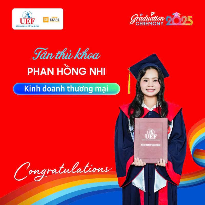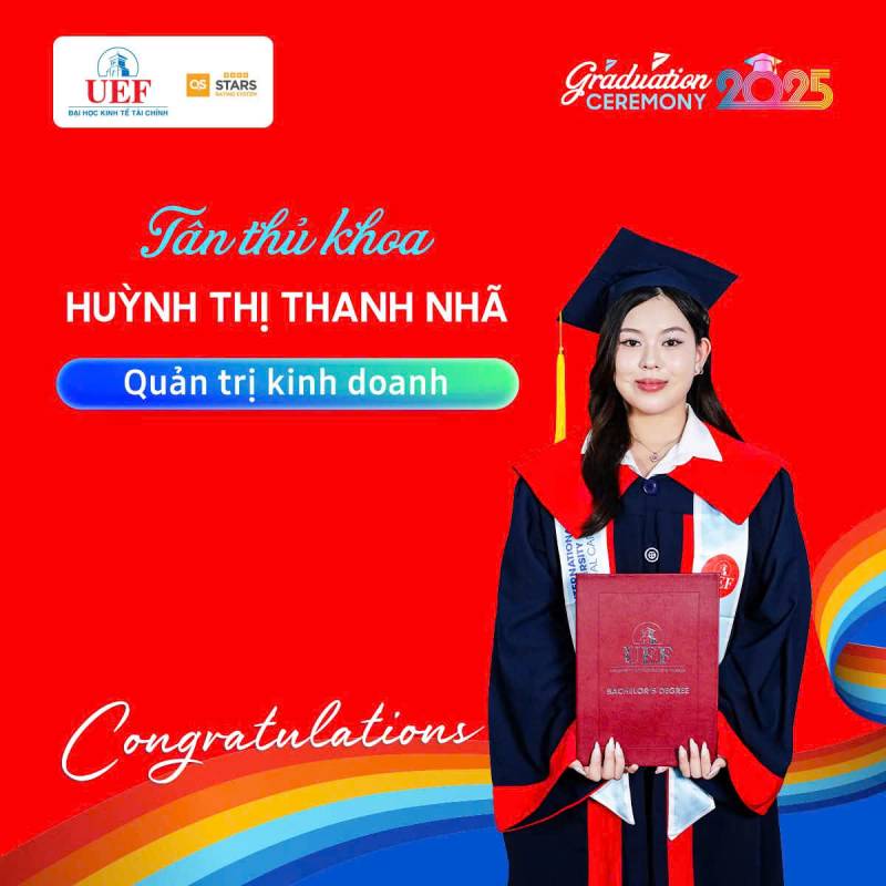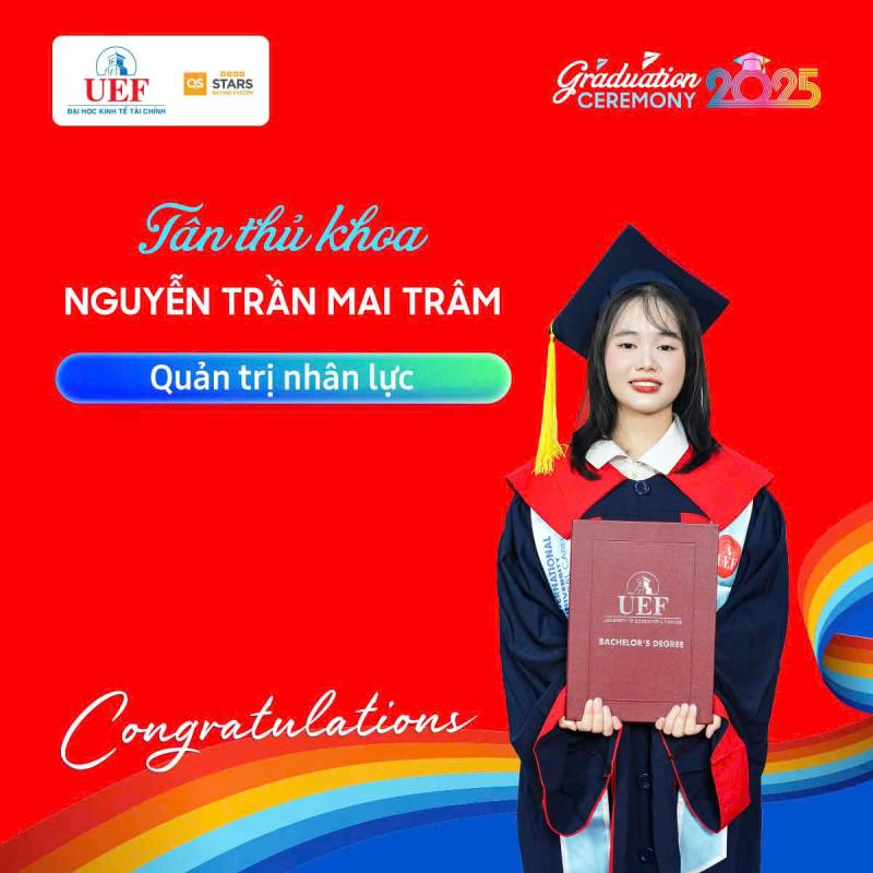 Ba tân Thủ khoa – ba câu chuyện, nhưng đều chung một sợi chỉ đỏ: đam mê, kiên trì và khát vọng cống hiến. Khoa Quản trị Kinh doanh UEF xin chúc mừng Huỳnh Thị Thanh Nhã, Nguyễn Trần Mai Trâm và Phan Hồng Nhi với thành tích xuất sắc, ghi dấu ấn rực rỡ trong mùa Tốt nghiệp 2025. Tin rằng, trên chặng đường phía trước, các em sẽ tiếp tục tỏa sáng, đóng góp cho cộng đồng và xã hội, đồng thời trở thành những cựu sinh viên UEF tự hào và truyền cảm hứng cho nhiều thế hệ sau.