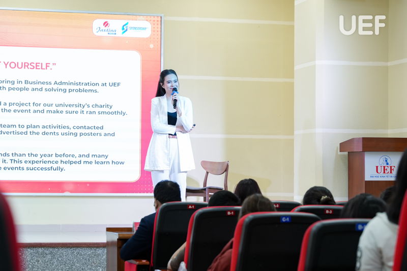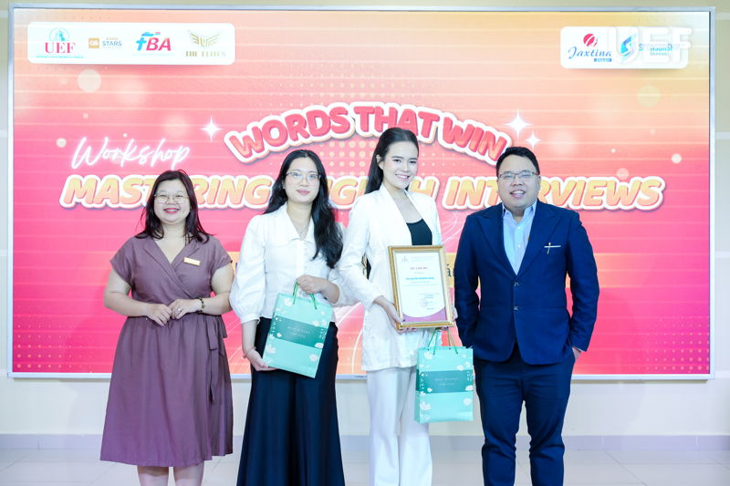 Nhằm giúp sinh viên trang bị thêm kiến thức, kỹ năng cần thiết để chinh phục các cuộc phỏng vấn tuyển dụng bằng tiếng Anh, sáng ngày 29/11, câu lạc bộ The Elites phối hợp với Khoa Quản trị kinh doanh tổ chức workshop “Words That Win - Mastering English Interview”. Lắng nghe những thông tin khách mời chia sẻ, UEFers đã “bỏ túi” không ít bài học hay và có sự chuẩn bị tốt hơn trước khi bước ra thị trường lao động mang tính hội nhập toàn cầu hiện nay.
