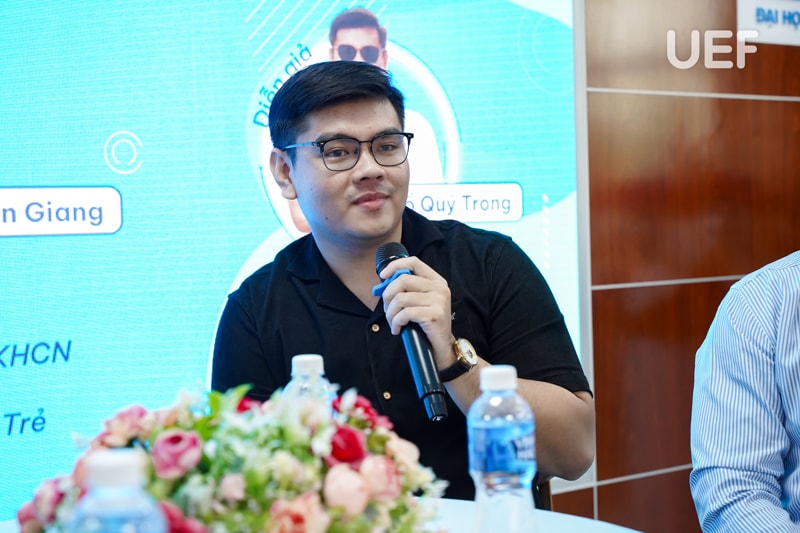 Mang đến chương trình là những chia sẻ truyền cảm hứng từ ThS. Hoàng Sơn Giang - Trưởng phòng Truyền thông & Dịch vụ KHCN, Trung tâm Phát triển Khoa học và Công nghệ Trẻ Thành Đoàn TP.HCM; TS. Nguyễn Lê Hoàng Long - Giảng viên Khoa Quản trị kinh doanh UEF và anh Hồ Quý Trọng - Giám đốc Công ty TNHH Tổ tượng Smillie, cựu sinh viên khóa 2019.