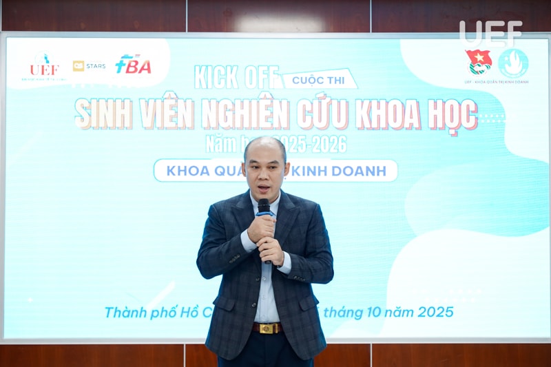 Tiếp nối tinh thần học thuật sôi nổi của sinh viên và đóng góp tích cực vào hoạt động nghiên cứu của trường, Khoa Quản trị kinh doanh (FBA) đã kick-off cuộc thi Sinh viên nghiên cứu khoa học năm học 2025 - 2026 vào sáng ngày 15/10. Chương trình là lời kêu gọi sinh viên bước vào hành trình khám phá tri thức, sáng tạo và trưởng thành trong tư duy học thuật. Ngoài ra, FBAers cũng đã tích lũy nhiều bài học thực tế bổ ích từ các diễn giả có kinh nghiệm trong nghiên cứu.