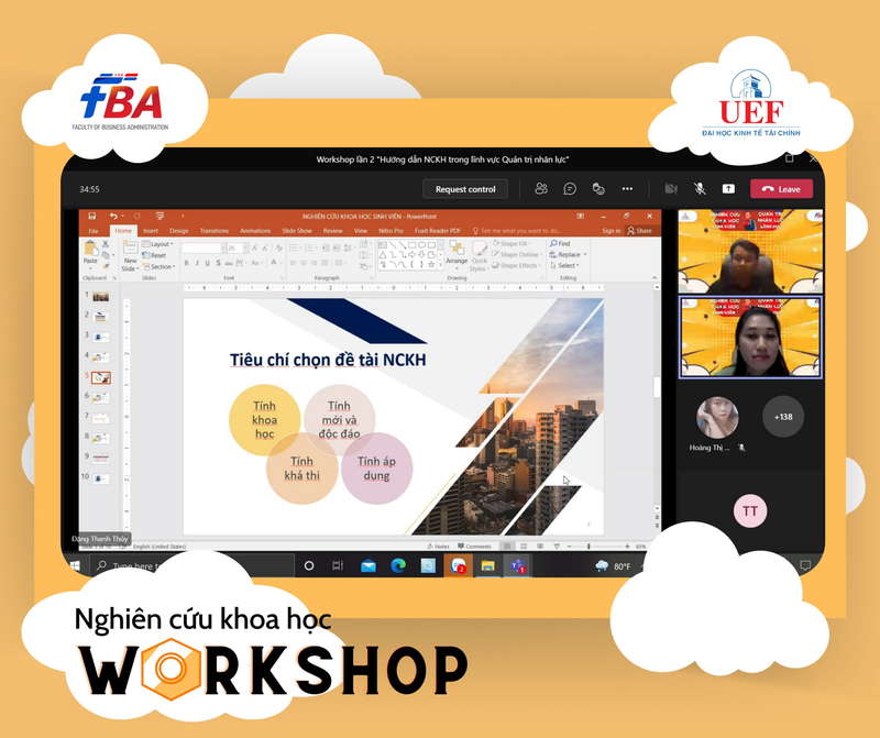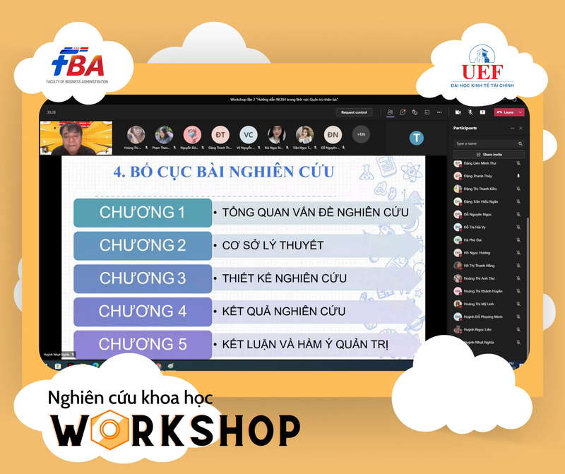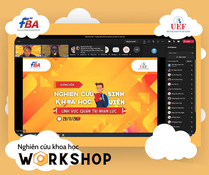 Theo đó, tối ngày 28/11, Khoa Quản trị kinh doanh UEF đã có buổi trao đổi, chia sẻ kinh nghiệm nghiên cứu khoa học trong lĩnh vực Quản trị nhân lực cho các bạn sinh viên. Workshop đã mang đến nhiều thông tin hữu ích cho các bạn trong quá trình tham gia nghiên cứu khoa học.