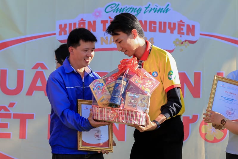 Tiếp tục ngày thứ 2 của chương trình Xuân tình nguyện 2024, các bạn chiến sĩ đã tiến hành trao tặng hơn 40 phần quà cho các hộ gia đình khó khăn, hộ gia đình chính sách và các em học sinh nghèo vượt khó. Mỗi phần quà bao gồm các nhu yếu phẩm thiết yếu như gạo, mì tôm, dầu ăn, nước mắm,... với trị giá hơn 500.000 VNĐ.