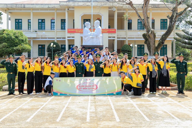 Tiếp nối hành trình tìm về những giá trị lịch sử hào hùng của dân tộc, trong ngày thứ hai, các thành viên của Nhà FBA đã đến thăm hỏi và chúc Tết các chiến sĩ tại Tiểu đoàn huấn luyện cơ động D19 (Bộ đội Biên phòng tỉnh Đắk Nông), Chốt Biên phòng tại cột mốc biên giới số 53 Việt Nam - Campuchia. Tại đây, các bạn được cùng lắng nghe những chia sẻ về khó khăn khi làm nhiệm vụ canh gác biên giới cũng như trải nghiệm thực tế môi trường công tác của các anh để thêm yêu, thêm thương công việc của người lính biên phòng. Bên cạnh đó, chuyến đi này cũng góp phần mang đến nhiều kiến thức thực tiễn bên ngoài trường học về Luật Biên phòng Việt Nam, Luật Biên giới quốc gia.