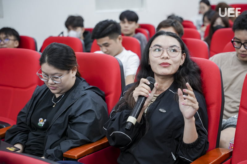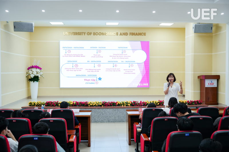 Phần trao đổi, giải đáp thắc mắc diễn ra sôi nổi khi sinh viên chủ động đặt câu hỏi xoay quanh lựa chọn doanh nghiệp, cách chuẩn bị hồ sơ, cũng như những lưu ý trong quá trình thực tập và làm khóa luận. Qua đó, nhiều băn khoăn được tháo gỡ, UEFers cũng thêm tự tin và định hướng rõ ràng cho chặng đường sắp tới.