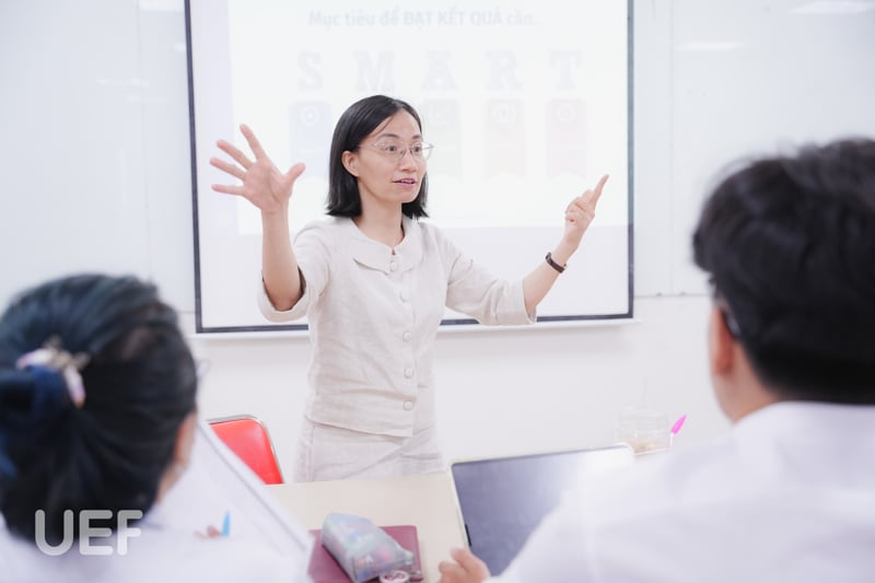 Trong đó, việc xây dựng mục tiêu được bà nhấn mạnh. Đồng thời, điều quan trọng nhất là kiến thức đa dạng và tư duy đa chiều. Diễn giả còn đưa ra các mô hình SMART (Specific - Tính cụ thể; Measurable - Đo lường; Achievable - Khả năng thực hiện; Realistic - Tính thực tế; Time bound - Khung thời gian), A.S.K.E giúp các bạn phân loại mục tiêu ngắn hạn hay dài hạn, tạo ra động lực hay áp lực để có thể đạt được kết quả rõ ràng hoặc có thể hành động kiên trì.
