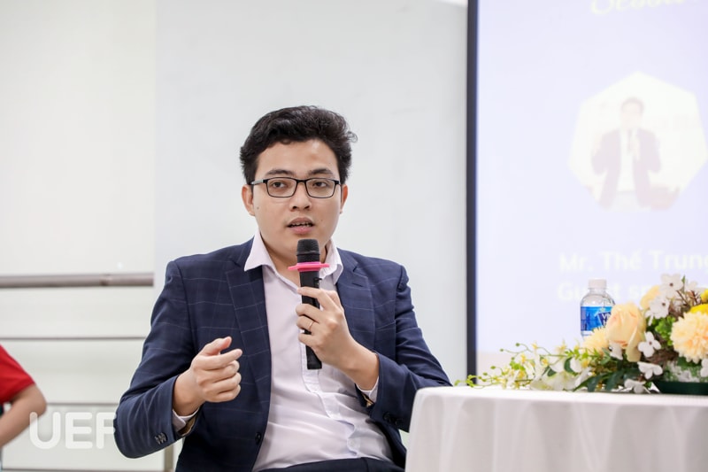 Tiếp đó, hai diễn giả đến từ doanh nghiệp đã giúp sinh viên hiểu rõ hơn về bức tranh nghề nghiệp thông qua những trải nghiệm thực tế của bản thân. Với hơn 11 năm kinh nghiệm về chuyên ngành đào tạo và phát triển, ông Trần Thế Trung nhấn mạnh ba vấn đề mà doanh nghiệp quan tâm, đó là: hiểu về tổ chức, kinh doanh và sản phẩm; lan tỏa văn hoá của tổ chức thông qua hệ thống học tập đa nền tảng; đưa ra các hoạt động phát triển nguồn lực và khả năng lãnh đạo trong tổ chức, nhân viên.