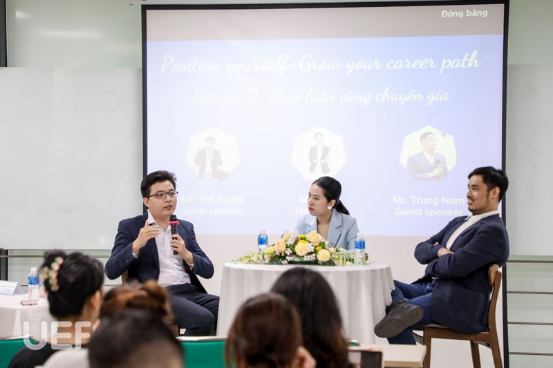 Từ ngày 21/5 đến 25/5 sẽ là thời gian đăng ký chọn chuyên ngành của sinh viên ngành Quản trị nhân lực UEF. Thấu hiểu những băn khoăn của các bạn trước khi ra quyết định quan trọng này, Khoa Quản trị kinh doanh đã tổ chức buổi Tọa đàm định hướng chuyên ngành với chủ đề “Position yourself - Grow your career path” vào chiều 15/5.