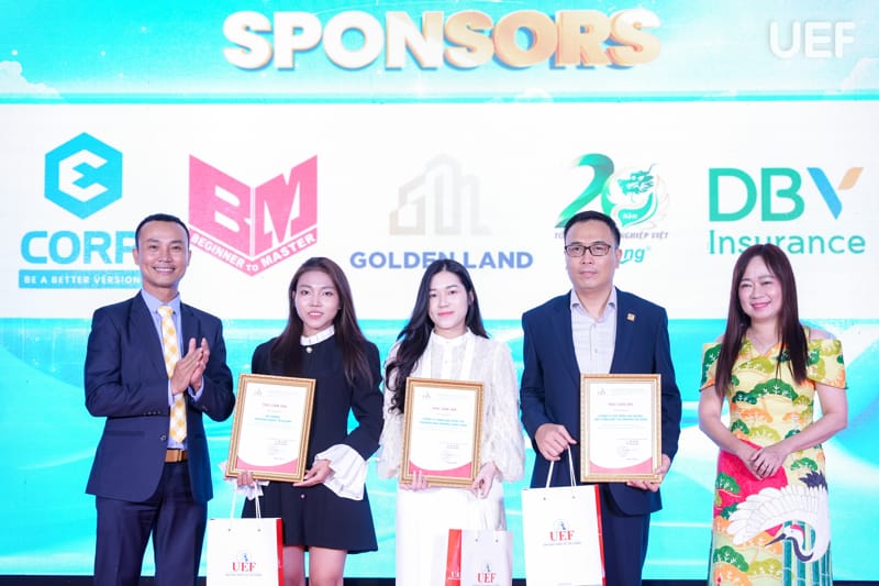 Đại diện UEF và Khoa Quản trị kinh doanh gửi lời cảm ơn đến các nhà tài trợ, doanh nghiệp đồng hành