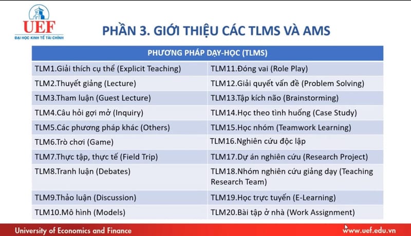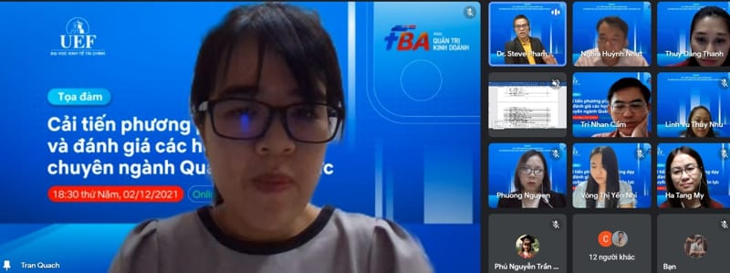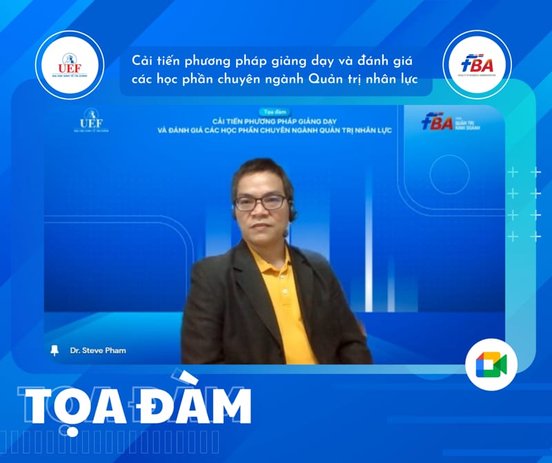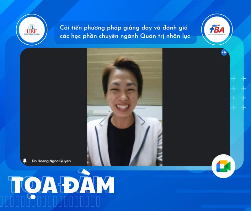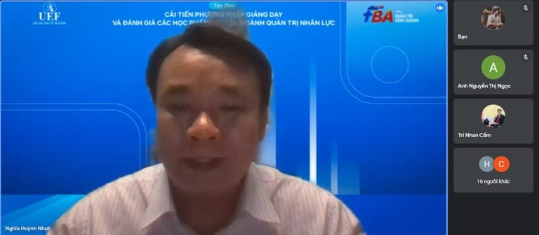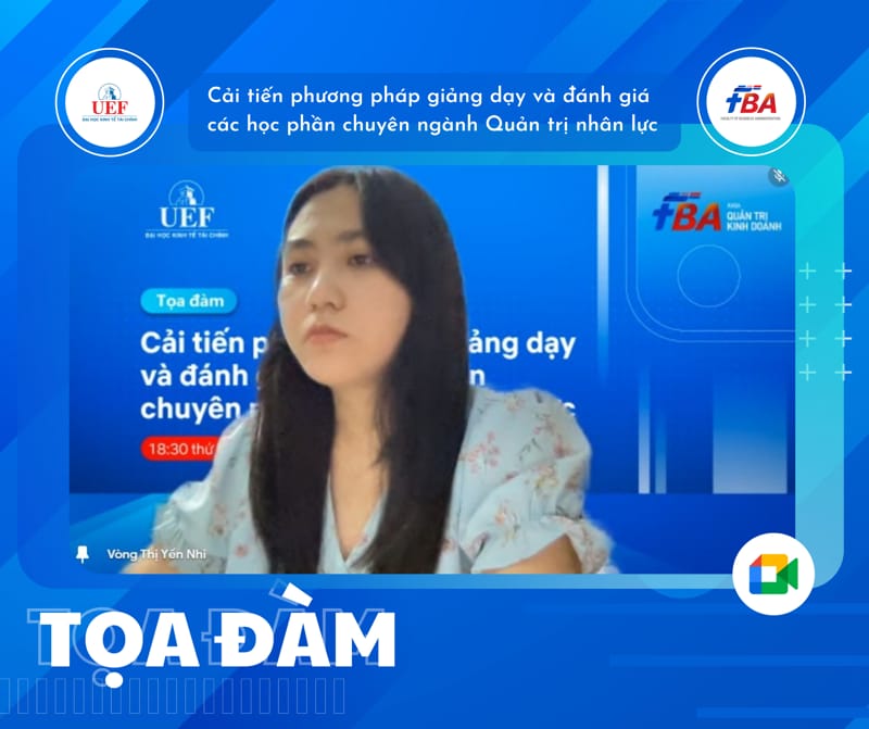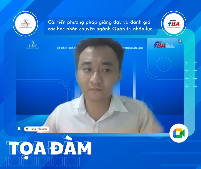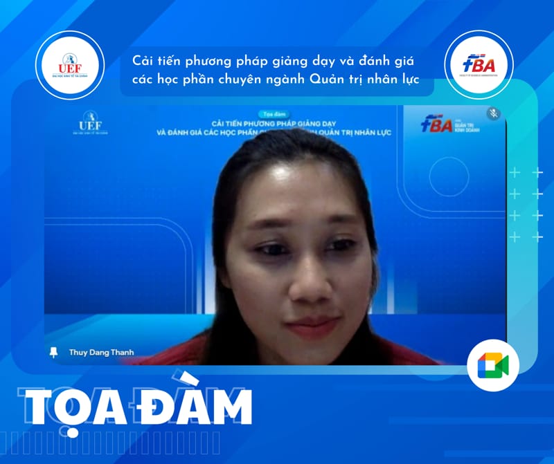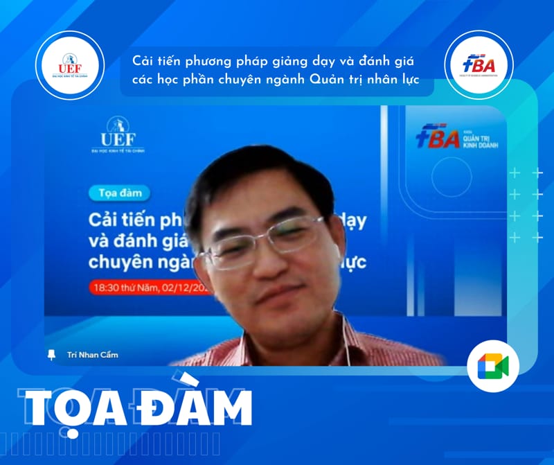 Để nhằm nâng cao chất lượng giảng dạy cũng như nhằm đáp ứng chuẩn đầu ra Chương Trình Đào Tạo (CTĐT) của trường đại học Kinh Tế - Tài Chính TP HCM nói chung và ngành Quản Trị Nhân Lực (QTNL) nói riêng, khoa Quản Trị Kinh Doanh (QTKD) phối hợp cùng các phòng ban tổ chức buổi tọa đàm “Cải Tiến Phương Pháp Giảng Dạy Và Đánh Giá Các Học Phần Chuyên Ngành QTNL” vào tối thứ Năm 02/12/2021 thông qua nền tảng trực tuyến Google Meet với mong muốn thúc đẩy, cải tiến các phương pháp giảng dạy và đánh giá các học phần để từng bước nâng cao chất lượng giảng dạy, nghiên cứu khoa học của các giảng viên hướng đến sứ mệnh của trường UEF là đào tạo nguồn nhân lực chất lượng cao đáp ứng nhu cầu xã hội và hội nhập toàn cầu.
