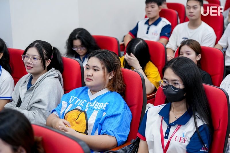 Bên cạnh đó, nội dung chia sẻ về chương trình tài năng ngành Quản trị kinh doanh cũng thu hút sự quan tâm đặc biệt của các tân sinh viên. Đây là chương trình học hoàn toàn bằng tiếng Anh, mang đến nhiều quyền lợi vượt trội như miễn phí một học kỳ quốc tế, được lựa chọn học phần linh hoạt và tham gia các học kỳ quốc tế tại những quốc gia như Singapore, Hàn Quốc, Đài Loan, Nhật Bản,... Chương trình còn là môi trường lý tưởng để sinh viên trau dồi ngoại ngữ, phát triển năng lực quản trị và mở rộng cơ hội hội nhập toàn cầu.