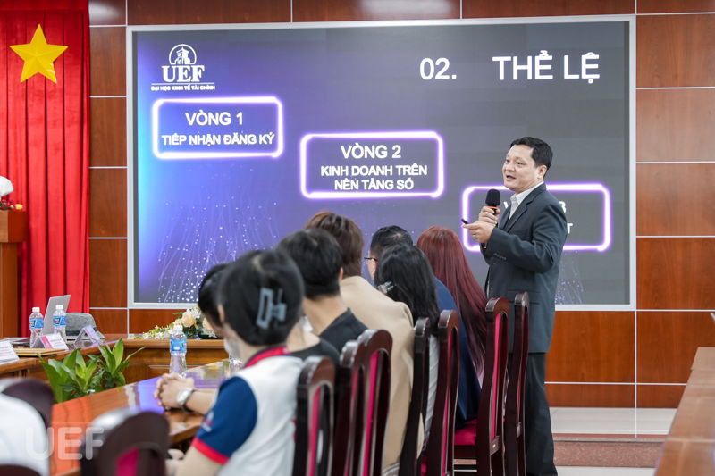 Phát biểu khai mạc chương trình, ThS. Trần Hoàng Nam gửi lời cảm ơn đến đối tác đã cùng chung tay, tạo cơ hội cho sinh viên tranh tài, học hỏi kinh nghiệm thực tế. Thầy cũng nhấn mạnh, mỗi năm, Khoa và Nhà trường triển khai không ít cuộc thi đa lĩnh vực, mở ra cơ hội cho UEFers cọ xát, tăng cường trải nghiệm. “Sân chơi lần này có tính thực tế và cạnh tranh rất cao. Và thầy tin chắc rằng, qua cuộc thi, các bạn sẽ thêm tự tin và bản lĩnh khi đứng trước thị trường kinh doanh khốc liệt trong bối cảnh hiện nay”, thầy chia sẻ.
