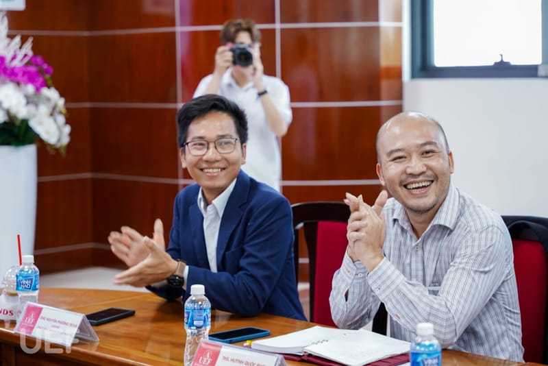 Về phía UEF có: ông Đỗ Quốc Anh - Phó Chủ tịch Hội đồng trường, TS. Nhan Cẩm Trí - Phó Hiệu trưởng Nhà trường, ThS. Huỳnh Quốc Phong - Giám đốc Trung tâm Hợp tác doanh nghiệp, TS. Võ Văn Thành Thân - Trưởng khoa Ngôn ngữ và Văn hóa quốc tế, TS. Lý Đan Thanh - Trưởng Khoa Quản trị kinh doanh, ThS. Nguyễn Phước Lân - Phó Giám đốc thường trực Trung tâm Ngoại ngữ - Tin học UEF, ThS. Cao Đỗ Quyền - Trợ lý ngành Ngôn ngữ Nhật, ThS. Nguyễn Thị Lan Hương - Phó Trưởng phòng Đào tạo, TS. Huỳnh Nhựt Nghĩa - Phó Trưởng Khoa Quản trị kinh doanh, ThS. Nguyễn Ngọc Thủy Tiên - Phó Trưởng Khoa Quản trị kinh doanh, ThS. Trần Hoàng Nam - Phó Trưởng Khoa Quản trị kinh doanh.