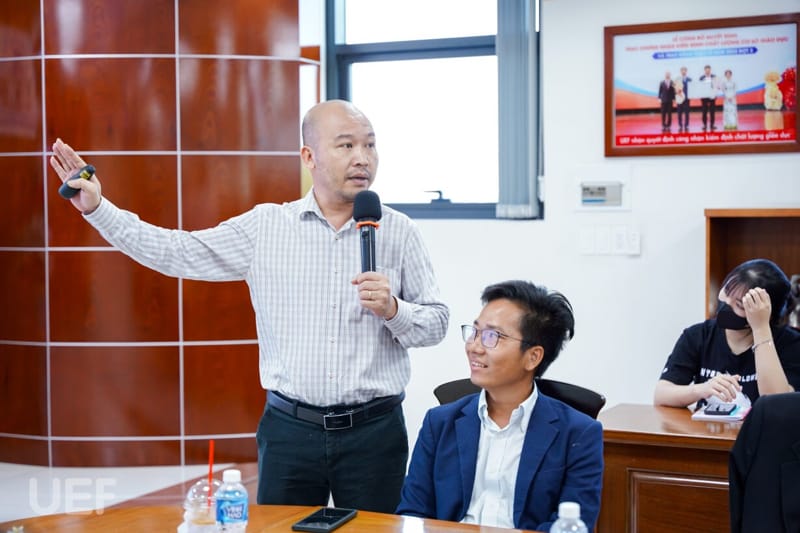 Mở đầu buổi hội thảo, TS. Nhan Cẩm Trí đã cùng các bạn sinh viên nhìn lại những giá trị to lớn đến từ các chương trình thực tập quốc tế. Thầy khẳng định: “Là trường đại học áp dụng mô hình đào tạo quốc tế, việc tạo điều kiện để sinh viên có nhiều cơ hội thực tập, làm việc tại các doanh nghiệp nước ngoài luôn là một trong những mục tiêu quan trọng dài hạn của UEF. Khi tham gia các chương trình này, các bạn sẽ được học hỏi và phát triển toàn diện bản thân, từ quá trình tiếp thu văn hóa, kiến thức, kinh nghiệm cho đến việc rèn luyện tư duy ngôn ngữ. Bên cạnh đó, thực tập có lương cũng là một hình thức để khẳng định giá trị của mỗi cá nhân và những gì sinh viên đó đã làm được”.