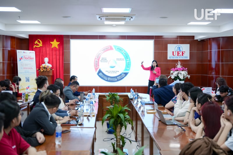 Bên cạnh việc chú ý lắng nghe, UEFers còn thể hiện tinh thần chủ động và quyết tâm tham gia cuộc thi thông qua việc tích cực trao đổi với các diễn giả. Nhiều câu hỏi được đặt ra xoay quanh cách khai thác dữ liệu, ứng dụng AI trong bán hàng và xây dựng chiến lược sản phẩm.