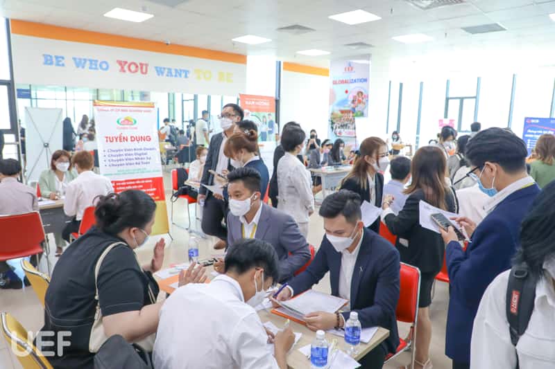 Cùng với những buổi workshop chia sẻ kiến thức, truyền đạt kinh nghiệm từ các chuyên gia được Nhà trường tổ chức trong mùa thực tập, Mock - Interview, Job Fair sẽ là "cơ hội vàng" để các bạn sinh viên phỏng vấn thử - thành công thật, tìm kiếm cơ hội việc làm, kết nối và tạo được nhiều mối quan hệ cùng nhân sự tại các công ty, tập đoàn trên khắp cả nước. Đồng thời, đây cũng là dịp để các doanh nghiệp đối tác của trường có nhu cầu tuyển thực tập sinh hoặc nhân sự tìm kiếm được những ứng cử viên sáng giá từ sinh viên UEF.
